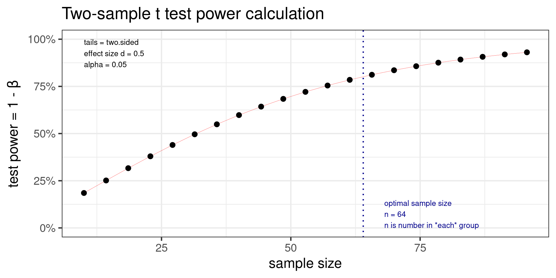 Effect size is Cohen’s d \(d = \frac{\mu_1 - \mu_2}{\sigma}\)