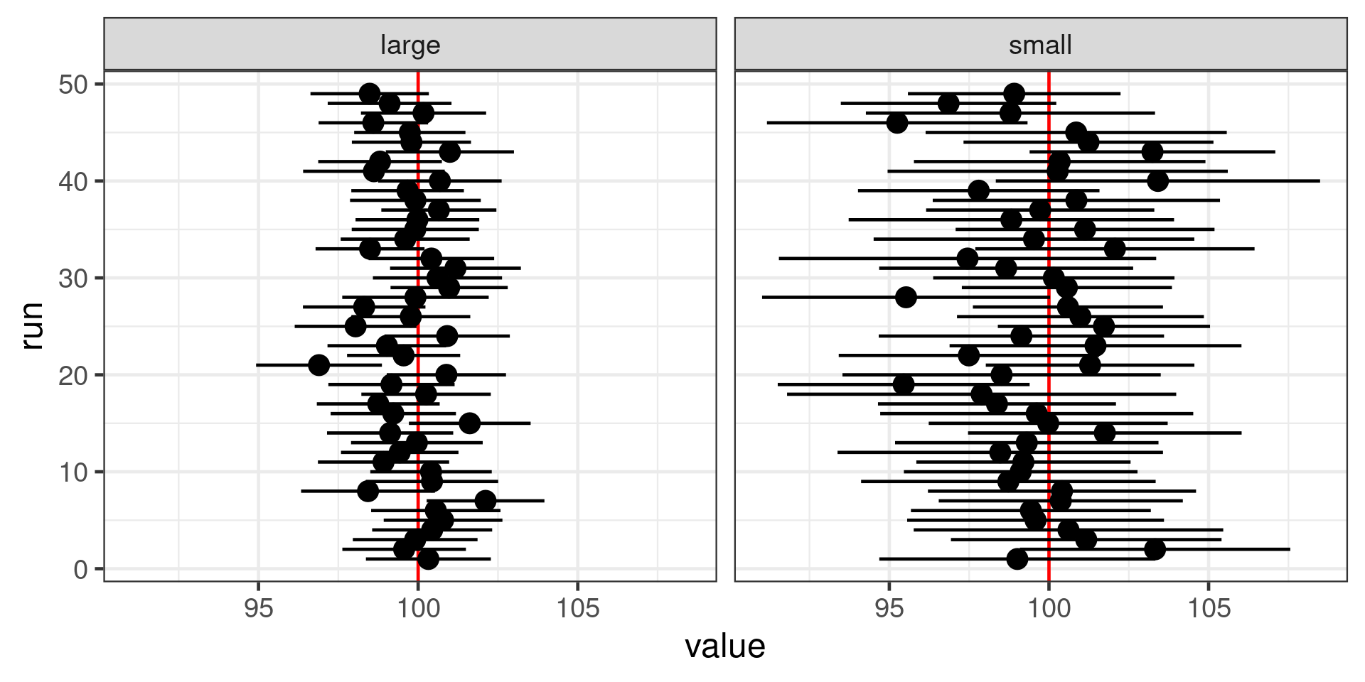 sliderInput("n", "Sample size, n", value = 10, min = 10, max = 100),