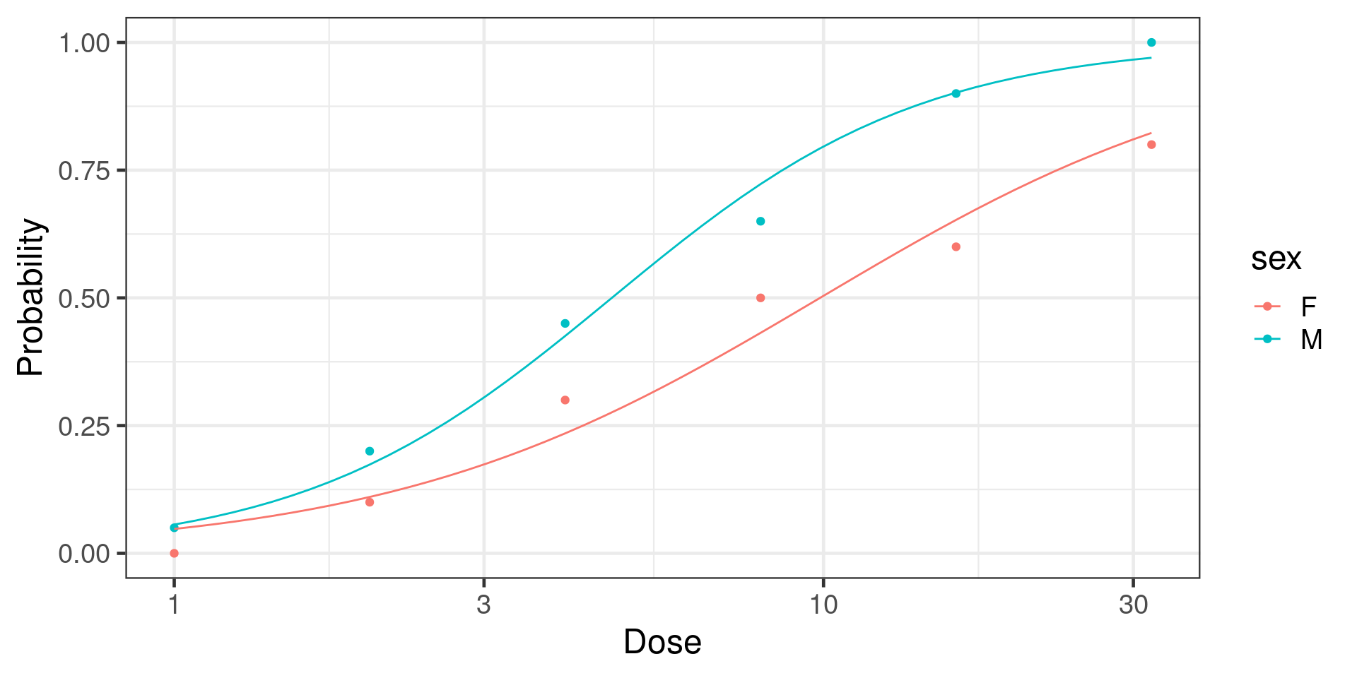 glm(formula = propdead ~ sex * ldose, family = binomial, data = budworm,