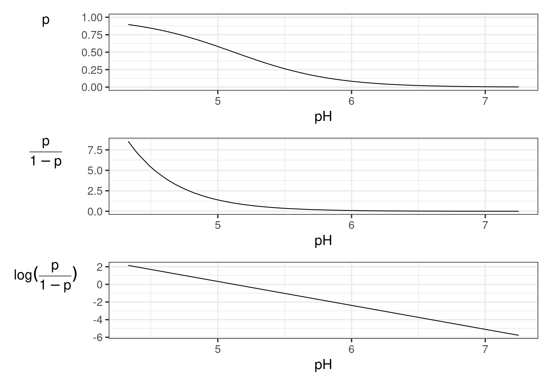 \[\color{red}{{g(E(\mu_i))}} = \color{blue}{ \beta_0 + \beta_1x_i}\] - Link function transforms the expected value