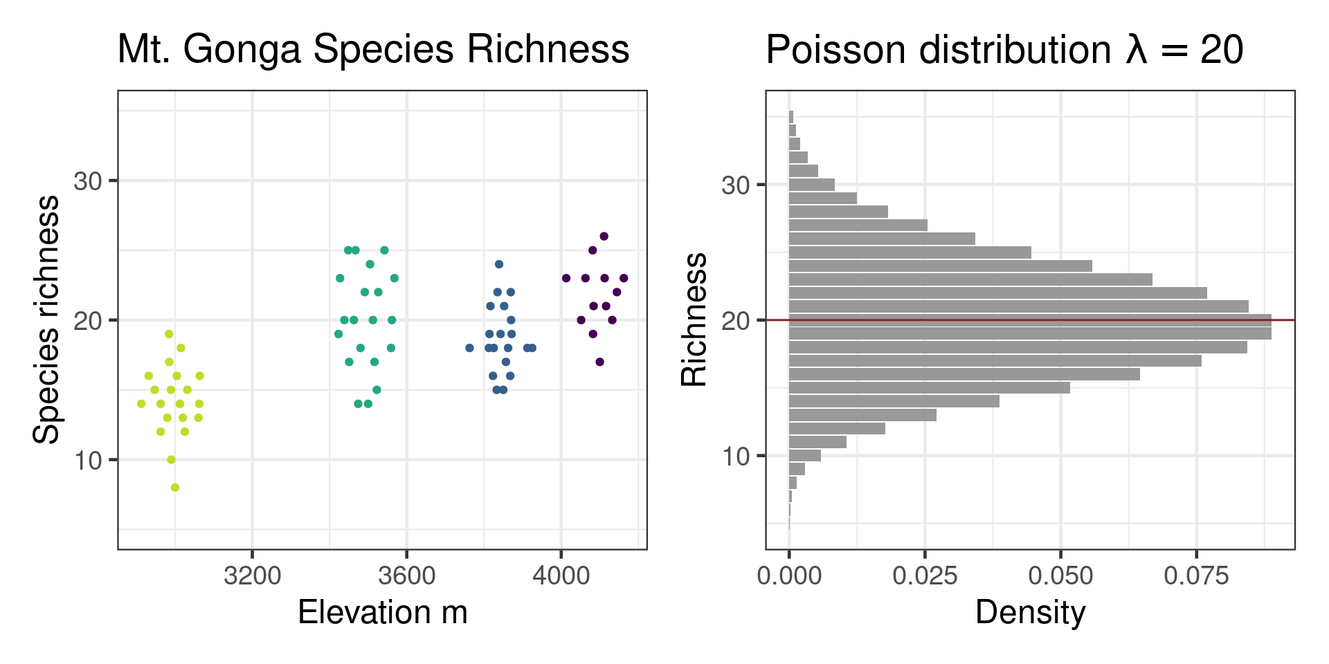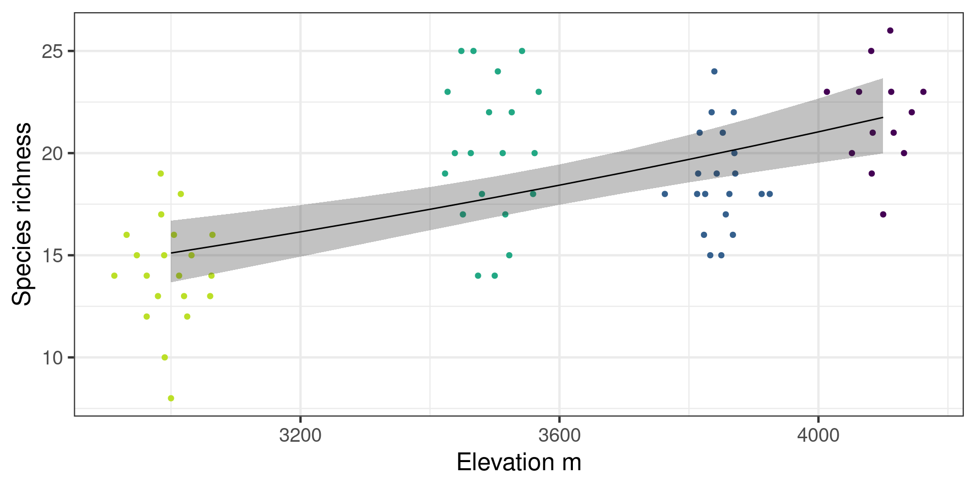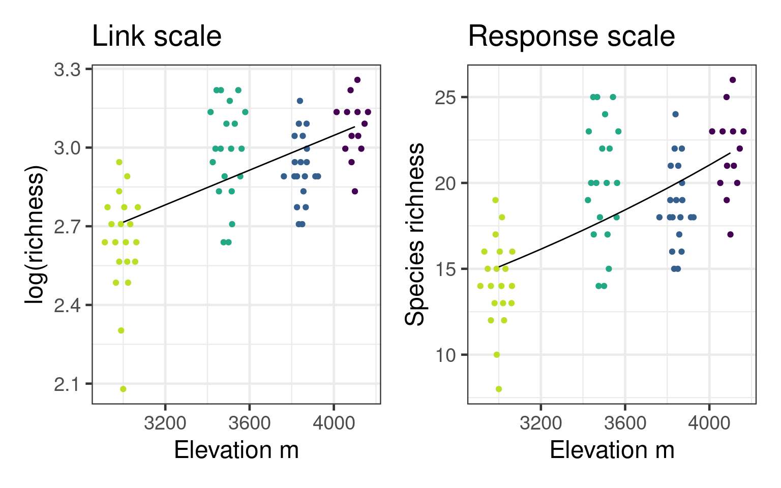 glm(formula = richness ~ elevation, family = poisson, data = gonga_rich)